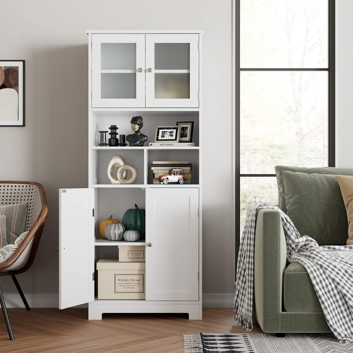 Unique design: the shelves in the door are height adjustable for more flexibility when storing, the bathroom cabinet has a magnetic lock to keep both doors closed, the doors do not accidentally open, and your bathroom is always clean and tidy