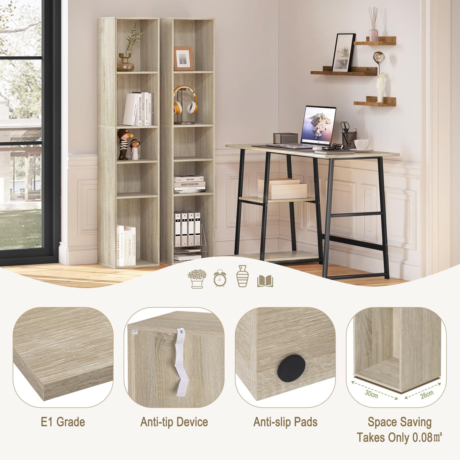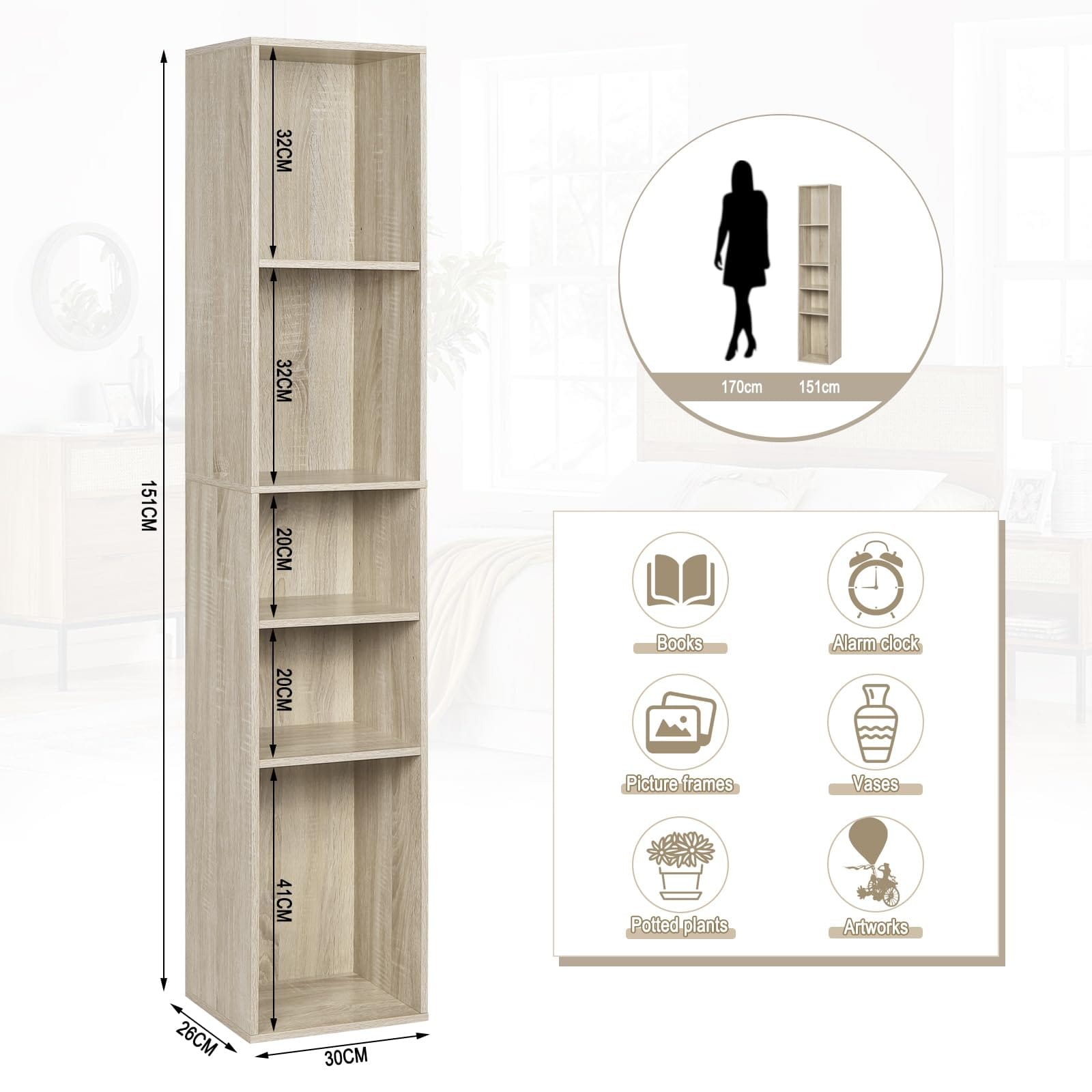 Bookcase, Open Shelf with 5 Cubes, Cube Shelf, Room Divider, Standing Shelf, Filing Shelf, Storage Shelf, Narrow in Living Room, Office, Made of Wood Material, Light Oak, 30 x 151 x 26