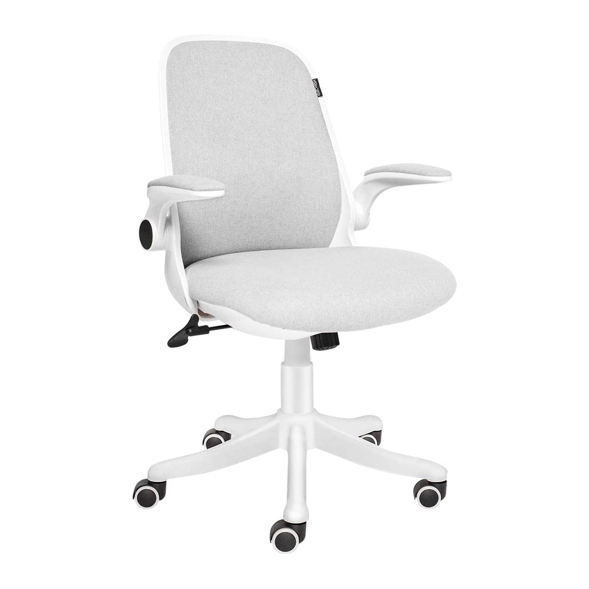 Create a stylish and comfortable workspace with this modern office chair, featuring a sleek white frame and contemporary grey upholstery that effortlessly brightens any room. Designed for dynamic comfort, it boasts a versatile "Rocking Function" that allows you to gently recline and relax, reducing pressure during long periods of sitting. The chair is engineered with intuitive user controls, including a lever that allows you to "Push and pull to unlock/lock" the tilt mechanism, ensuring you can switch easily between a stable working mode and a relaxed leisure mode. Additionally, a tension control knob located underneath the seat lets you "Adjust tension level," enabling you to customize the resistance of the rocking motion to perfectly suit your preference. With its breathable mesh backrest and sturdy five-star base, this chair offers the perfect balance of ergonomic support and functional elegance.