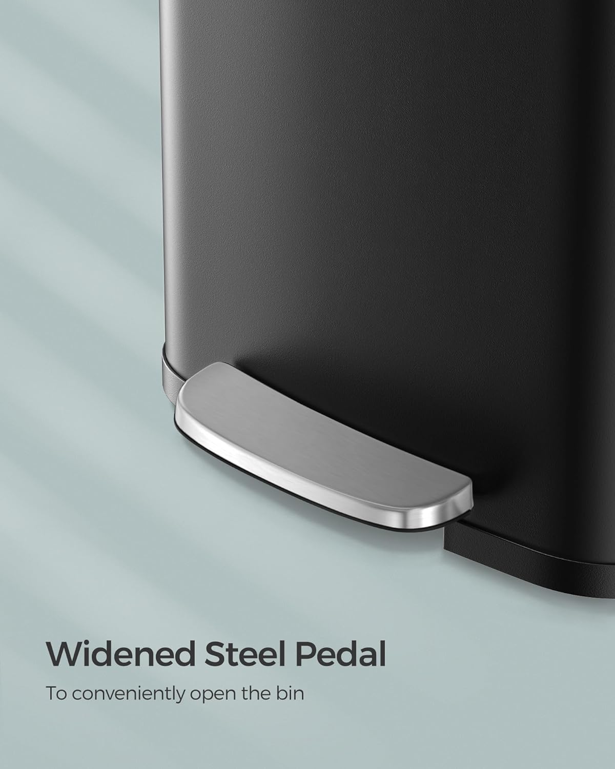 [Closes Softly & Stays Open] This pedal bin features a silent and soft-close lid without any cloud clang. The lid can be kept open by using your hand to open the lid to a catch point when needing to deal with large clean-ups