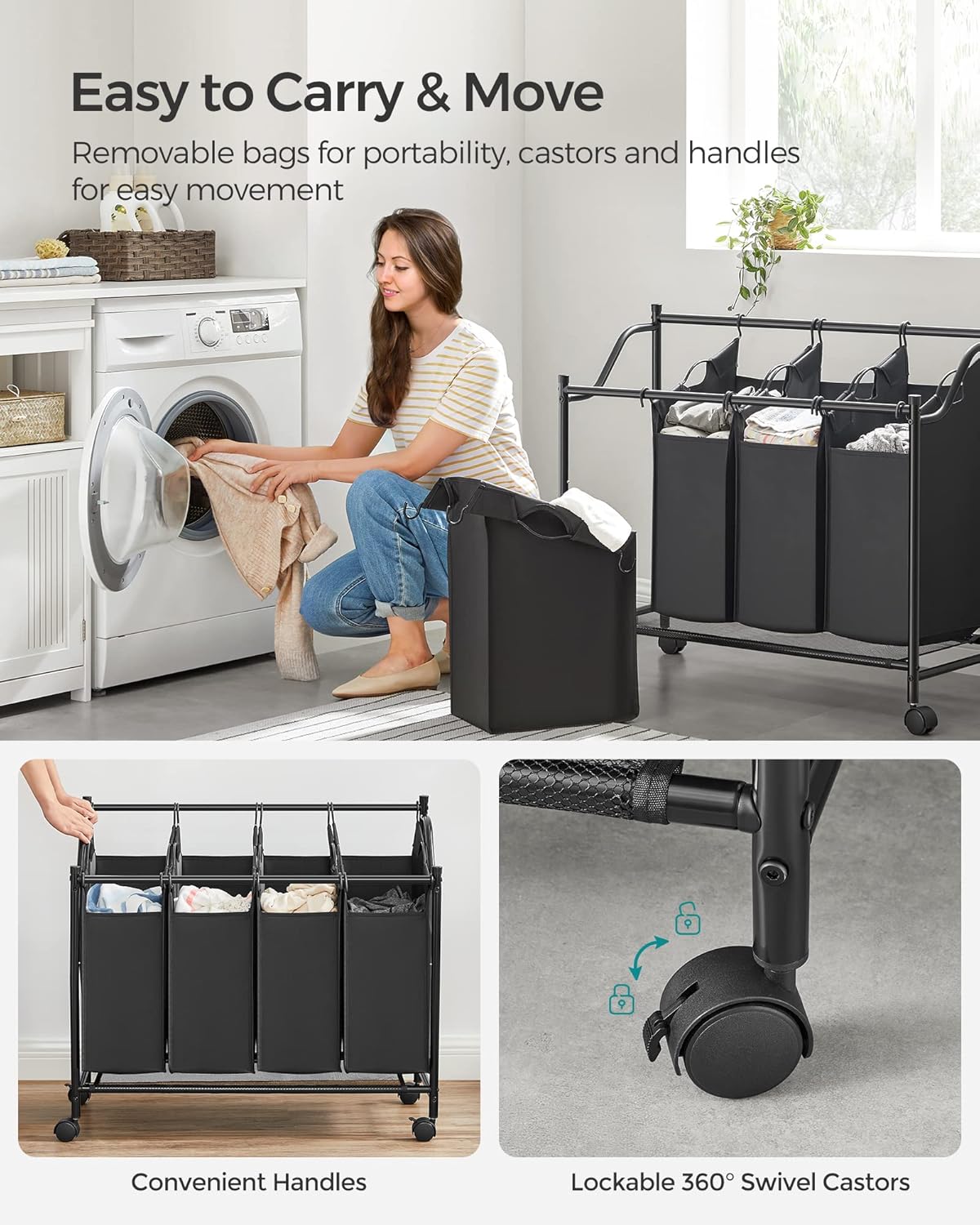 [4 Sections, Laundry Sorting Made Simple] With 4 separate washing bags, this laundry sorter keeps your laundry all sorted by colour or type and ready to go, cutting down your sorting time to make your laundry day a breeze