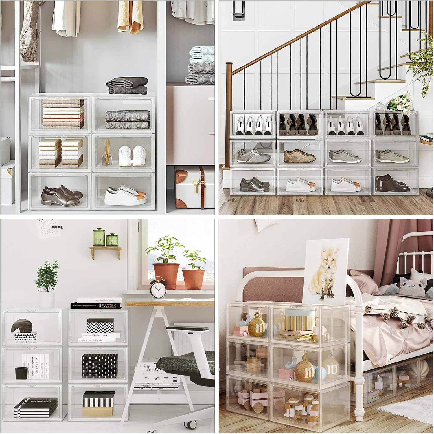 [Large Size Shoes Are In] 25.5 x 33.5 x 19 cm inner size fits shoes up to UK size 11, high-top sneakers, heels, and booties are all welcome in these shoe boxes; sent disassembled and requires simple assembly with clear instructions