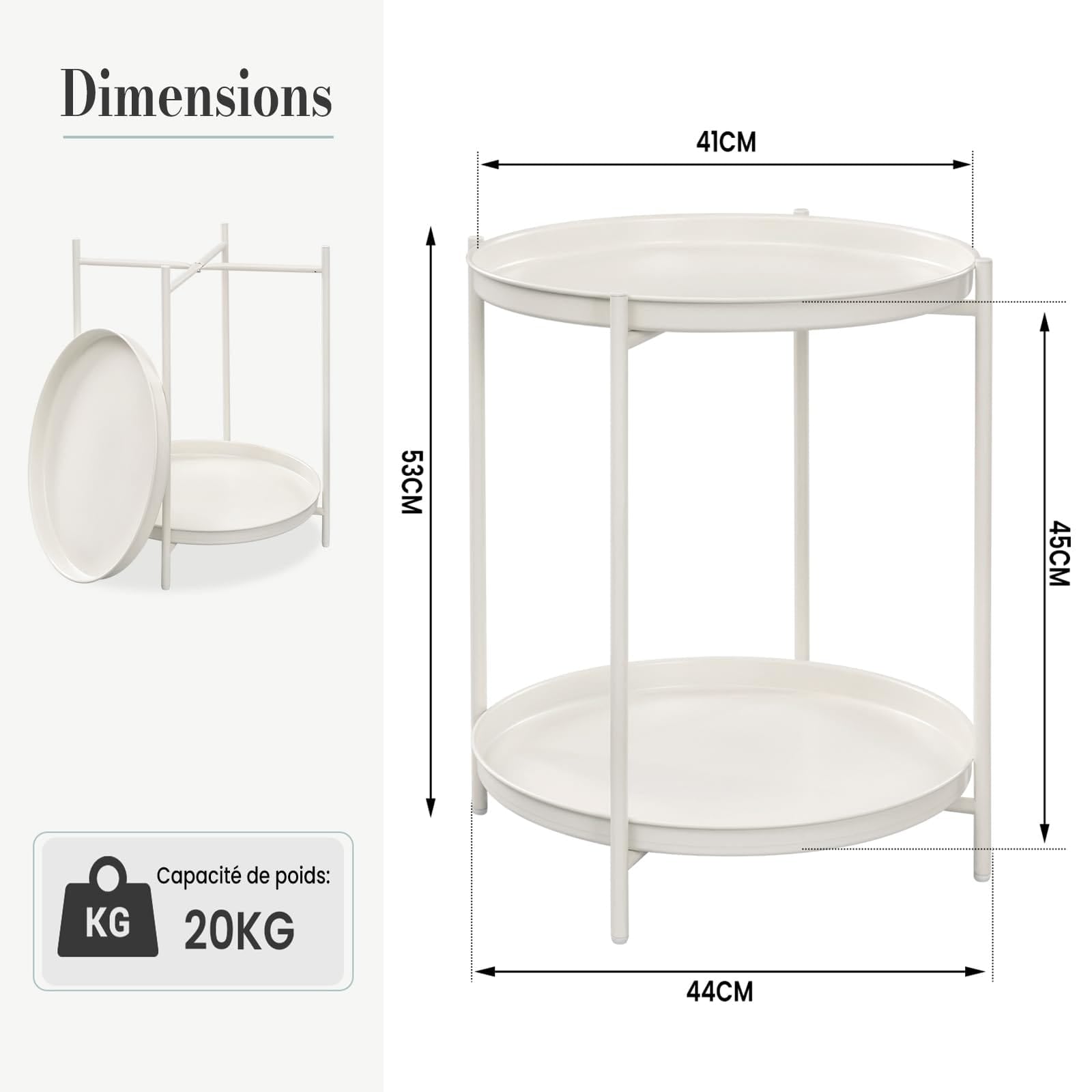 Table Basse Ronde, Table d'Appoint, Table Salon, Petite Table Basse avec 2 Plateaux Amovibles, Table de Chevet, en Métal, Crème