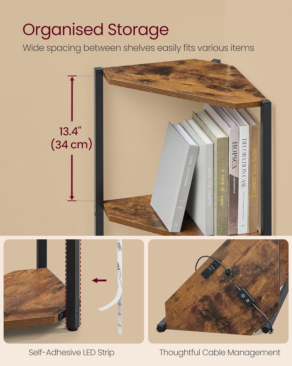 VASAGLE 5-Tier Corner Shelf, Bookcase with Adjustable LED Lights LBC590K02