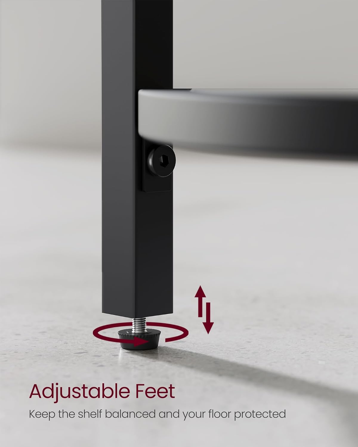 [Sturdy and Stable] Crafted from quality steel and tempered glass, this corner bookshelf boasts both durability and strength. Each shelf holds up to 11 lb, providing reliable support. The anti-tip kit and adjustable feet add to its stability