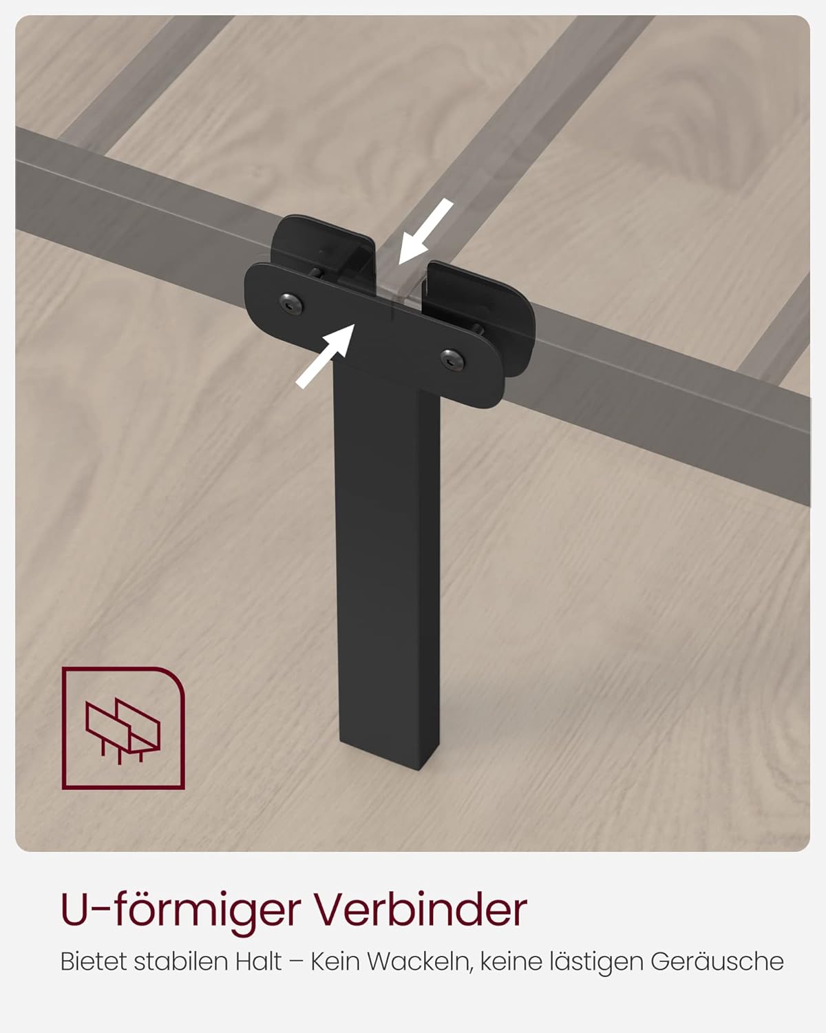 [Sturdy and Stable] High-quality support beams and 6 durable metal legs with U-shaped metal connectors give this bed frame high stability and a load capacity of 500 kg - no wobbling, no annoying noise