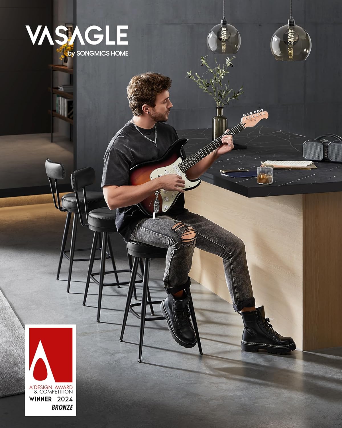 [Style That Speaks] Recognized the Bronze A' Design Award 2024, these bar stools from our VASAGLE EKHO Collection blend synthetic leather with refined stitching. A tangible homage to craftsmanship, they help craft a home that speaks volumes about style