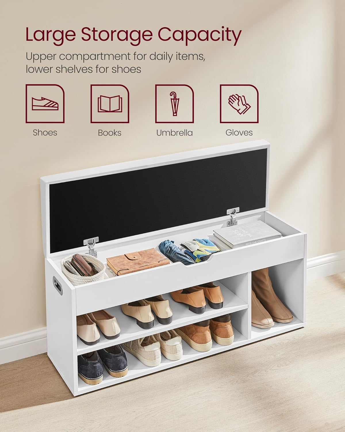 [Versatile Use] Elevate your space with a versatile shoe bench! Ideal for dorms, apartments, hallways, foyers, or bedrooms, this storage bench will fit in seamlessly with your home d‚cor and keep your home organised and inviting