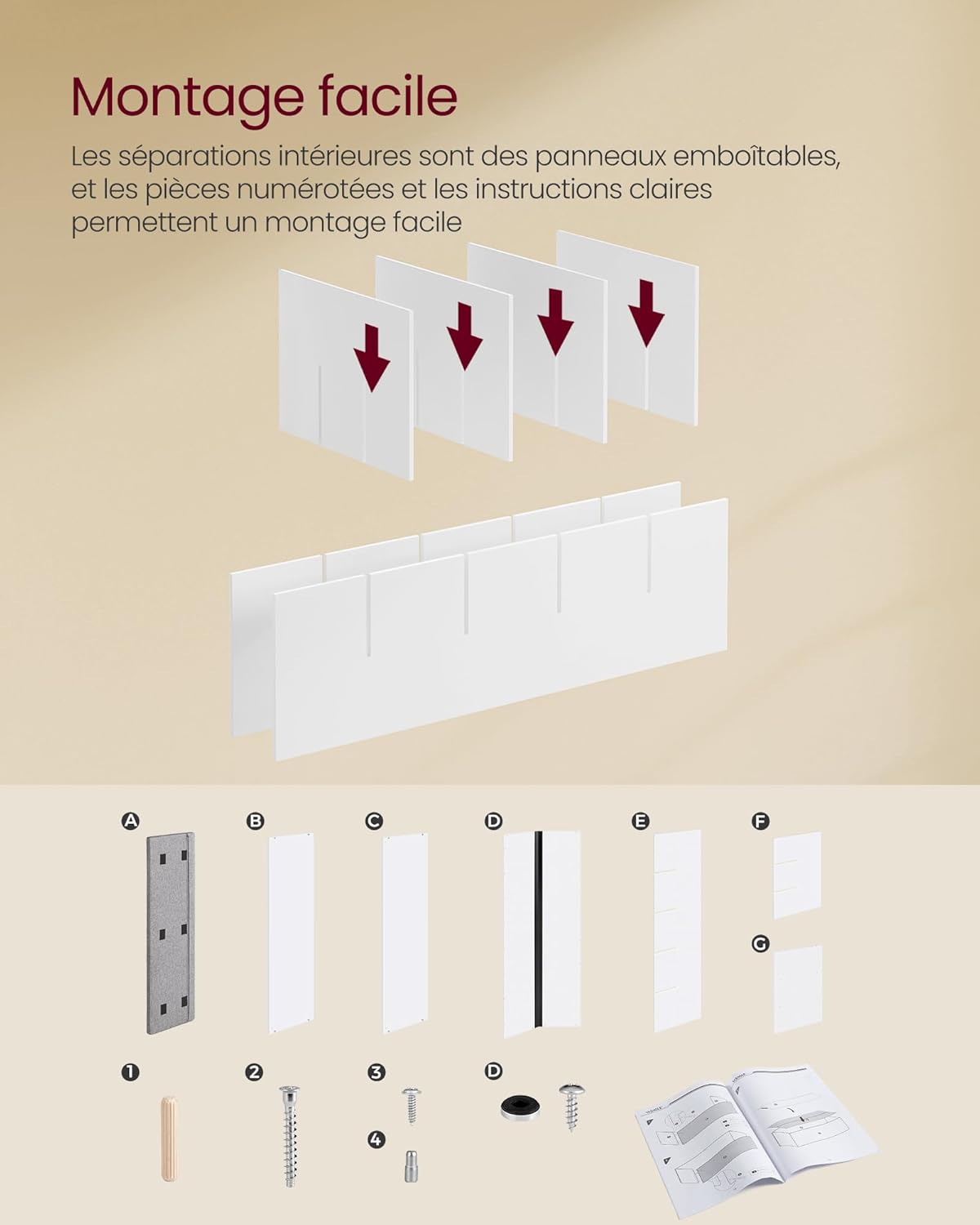 Easy to assemble: thanks to the built-in interior panels, labelled parts and clear instructions, you can assemble this shoe rack with absolute simplicity
