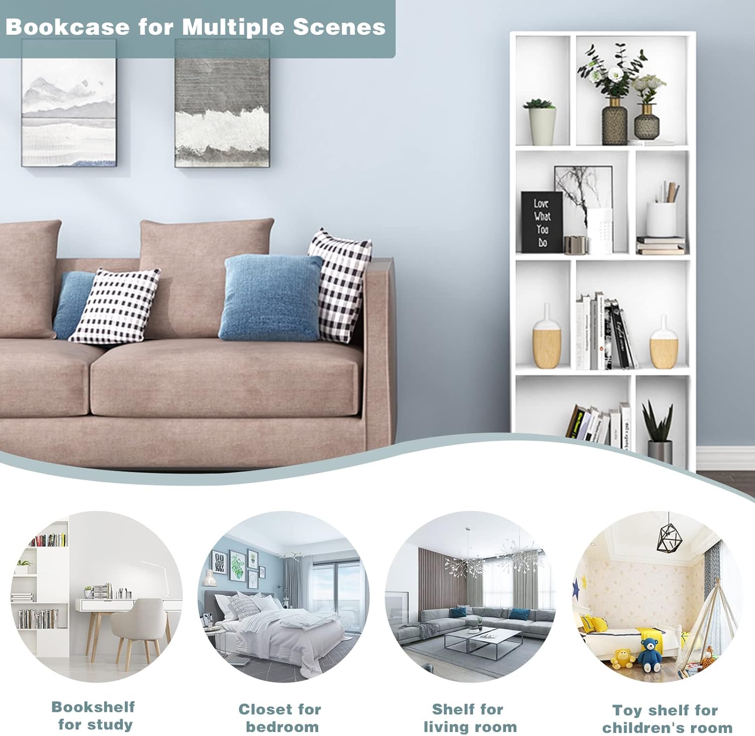 STORAGE CUBES: This standing bookcase is designed with 8 open compartments of 2 sizes, which offer you enough space to store or display the items of different sizes, such as books, CDs, souvenirs, decorative figures