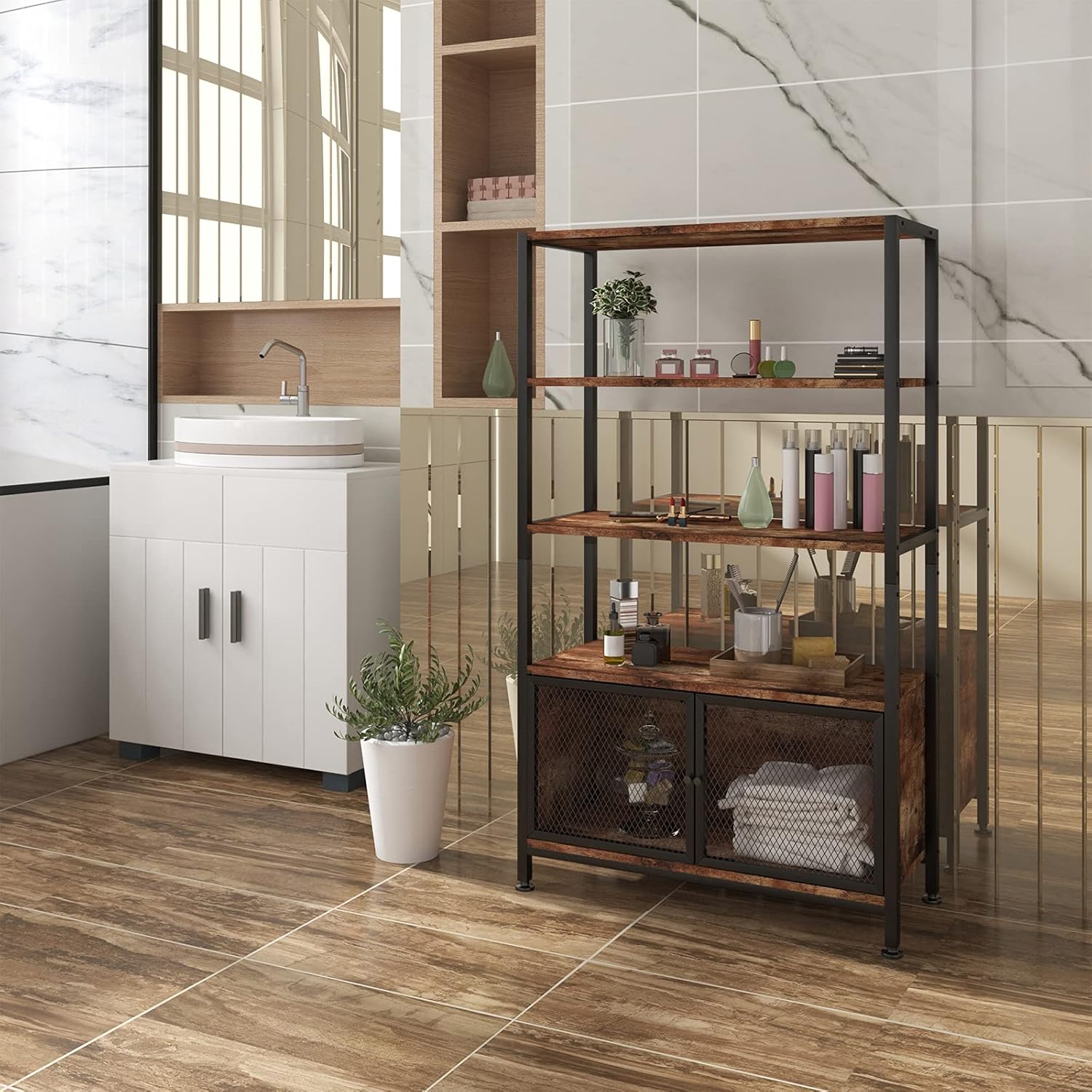 MULTI-PURPOSE - This 121cm tall shelving unit from Woltu features large storage space but less footprint of 0.21m2. It is a practical and decorative eye-catcher. You can use it as a bookcase, kitchen shelf, storage shelf, etc. Its versatile design can be easily integrated into any room, from the living room, study, bedroom to the kitchen to the balcony or hallway