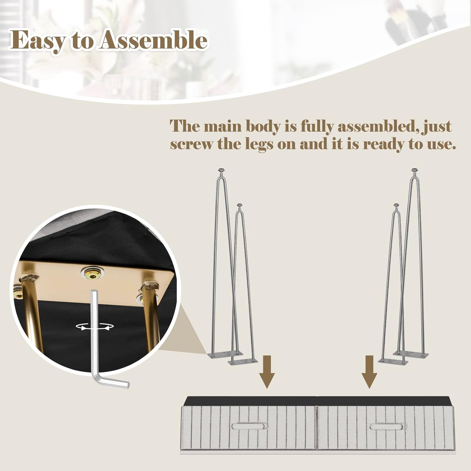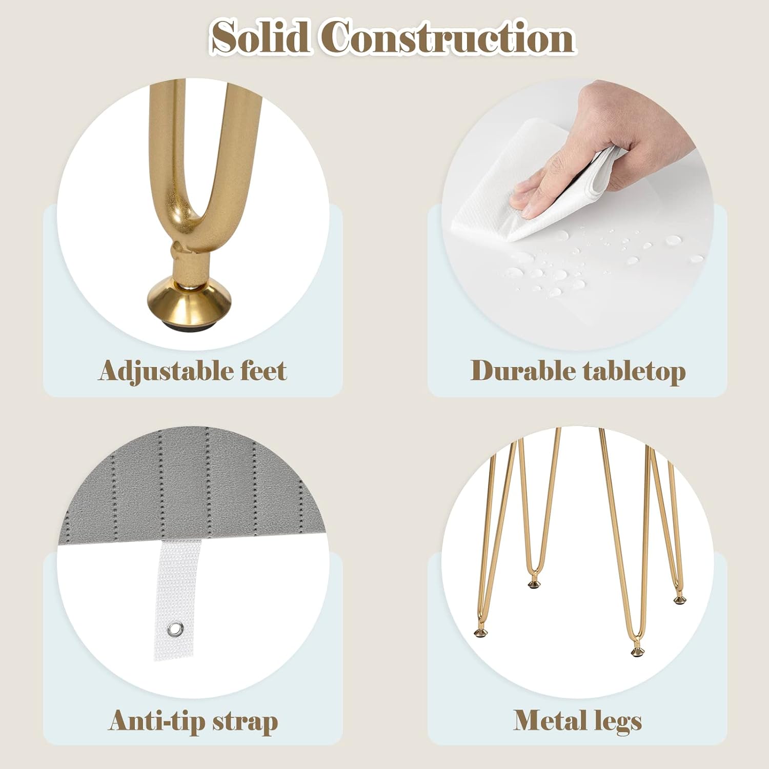 Sturdy and durable vanity table: The WOLTU dressing table is made from selected Class E1 MDF boards. The surface is treated with high-gloss PU varnish. This achieves the smooth surface with good wear resistance and water resistance. Golden metal legs and adjustable, non-slip feet make the whole design more stable and allow a load capacity of up to 50 kg. In addition, the feet protect the floor from scratches